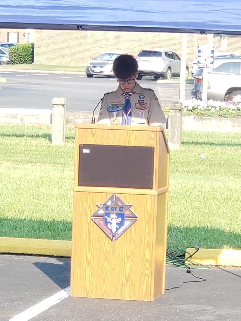The annual 4th of July flag raising ceremony was held at the Knights of Columbus Council 5480. Troop 242, 86 and Pack 242 raised the flag to open the ceremony. Eagle Scout Jacob read a letter discussing our freedom. The Newport News’ Sheriff’s Office and the Newport News’ Police were on hand.