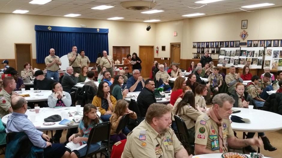 On December 18, 2019, we had our last court of honor of the decade. We were very busy recieving ranks, singing carols, and, of course, pigging out on popcorn, pizza, BBQ chicken, BBQ-popcorn-flavored-pizza, and lots of other delicious fare. There were many merit badges and ranks recieved, including one eagle palm. We also absorbed the members of Troop 151. The banquet went well from the opening ceremony, to us welcoming new members, and finally singing Silent Night as a group.
