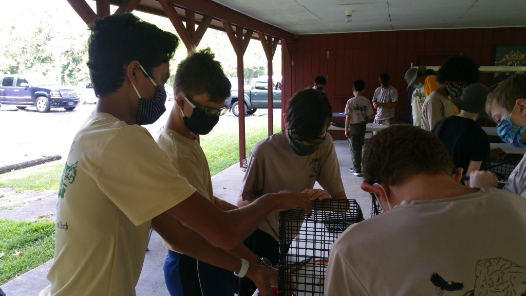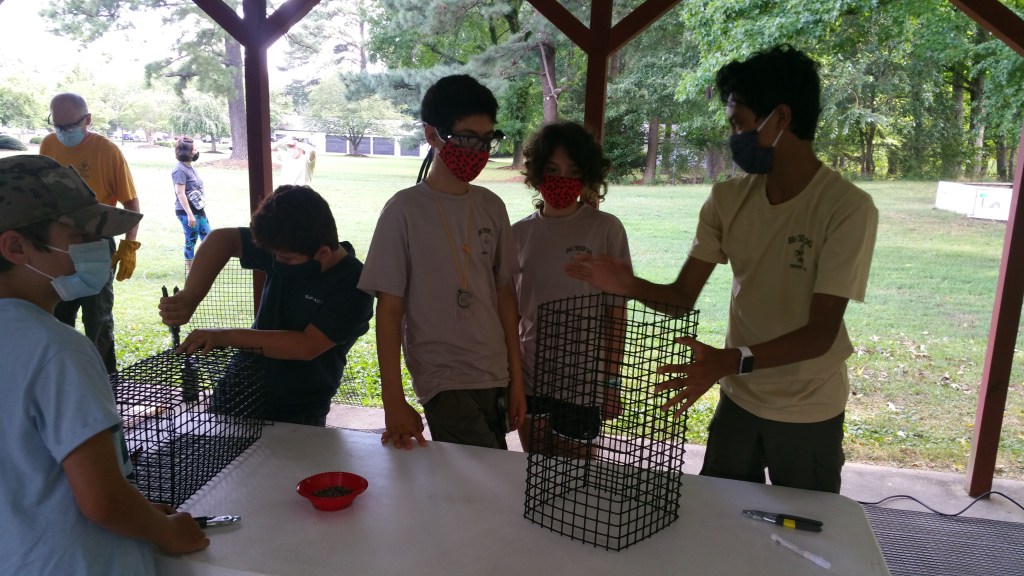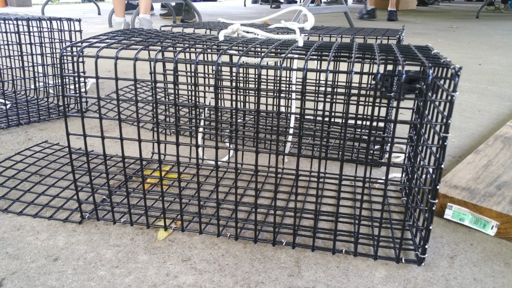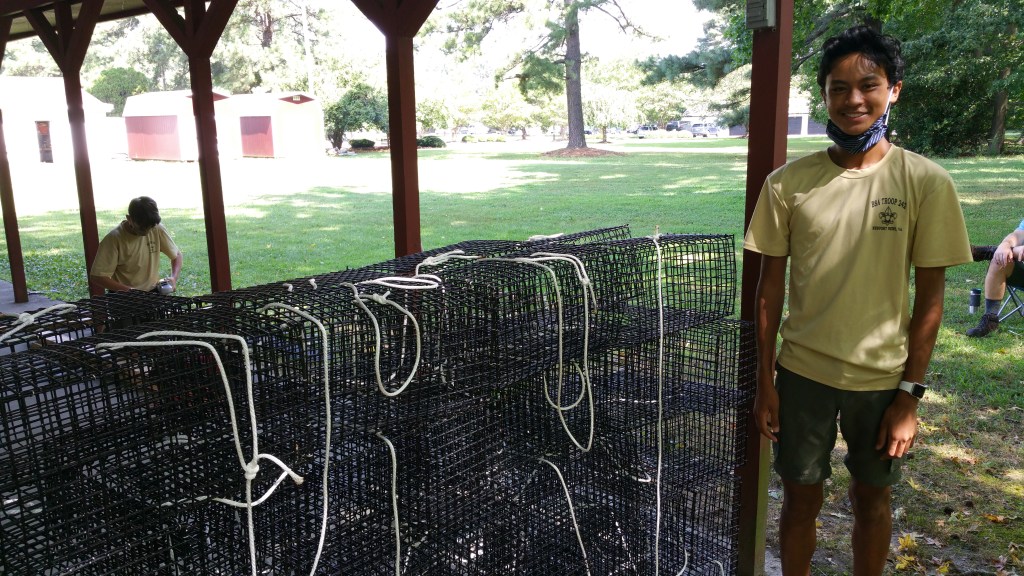 Hi everybody its me Abel with the next post covering BJ Diongzon’s eagle scout project. We went to work making oyster cages, and we learned how to do many things like using hog rings and cutting metal.