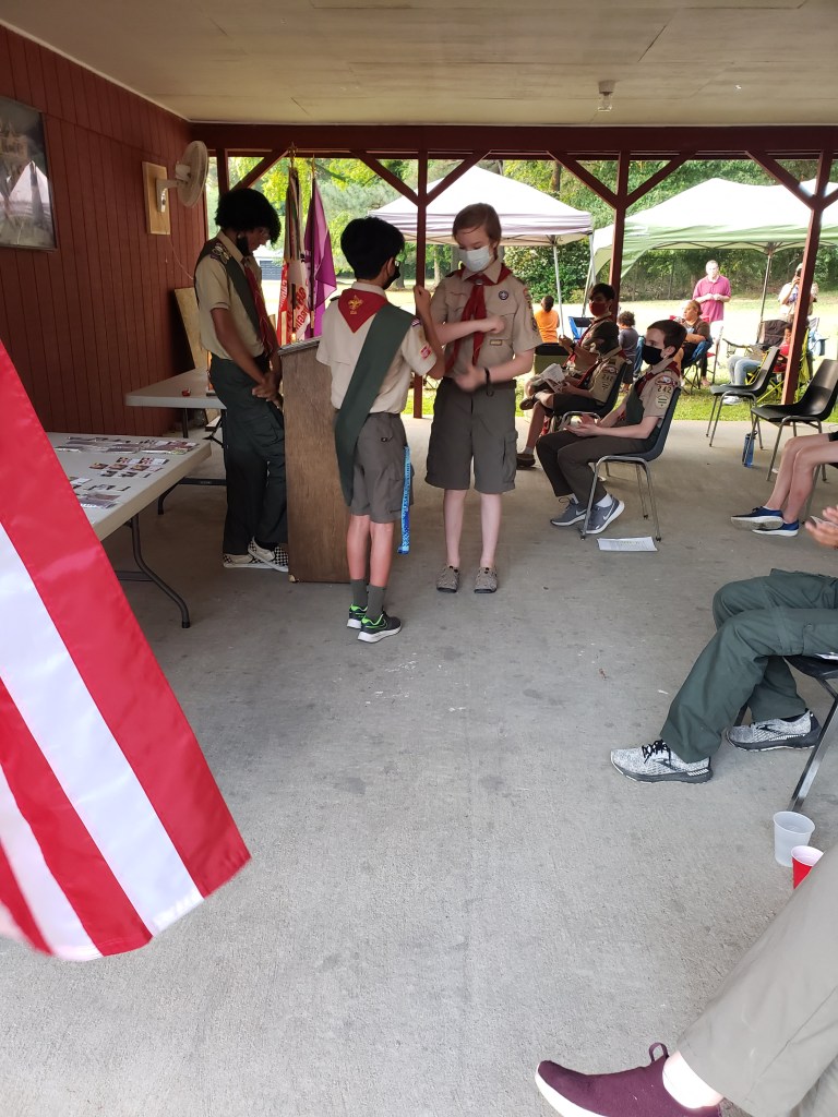 We had our spring 2021 court of honor outdoors on Wednesday, May 26. We had 50 rank advancements and 197 merit badges were awarded to scouts. Donovan was master of ceremonies and many family members were able to attend since our covid restrictions were up to 100 people gathering. Pizza was served during the court of Honor for all the Scouts, Scouters and guests. Our last Court of Honor was August 7th.