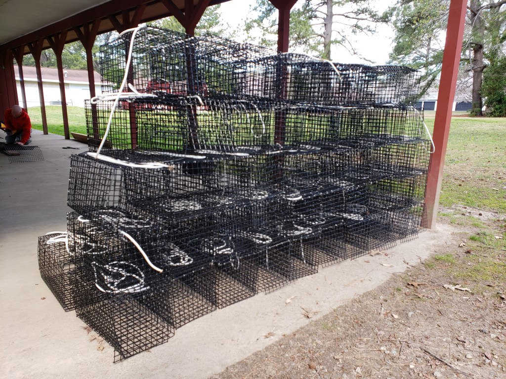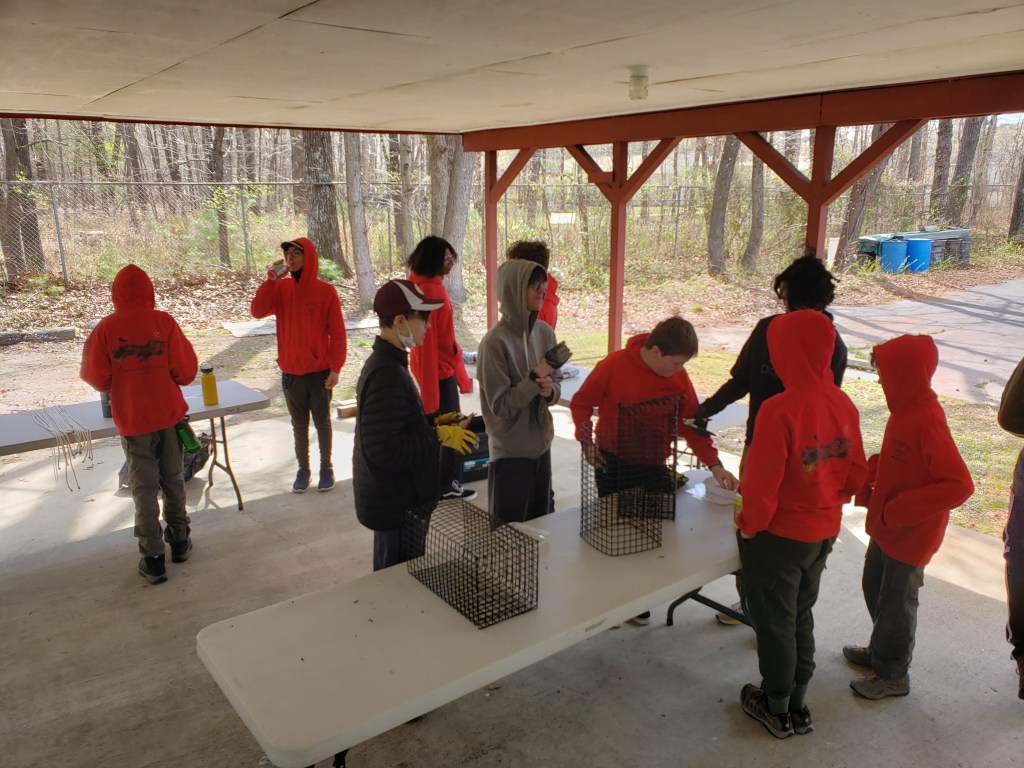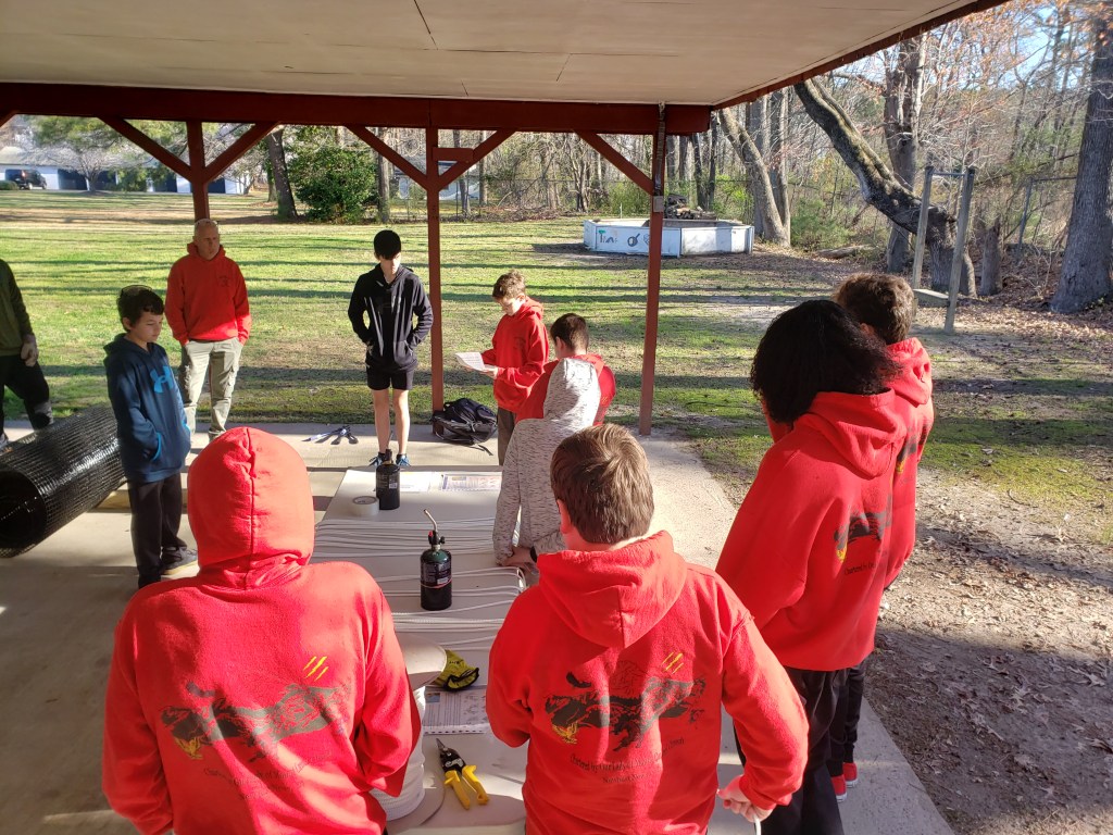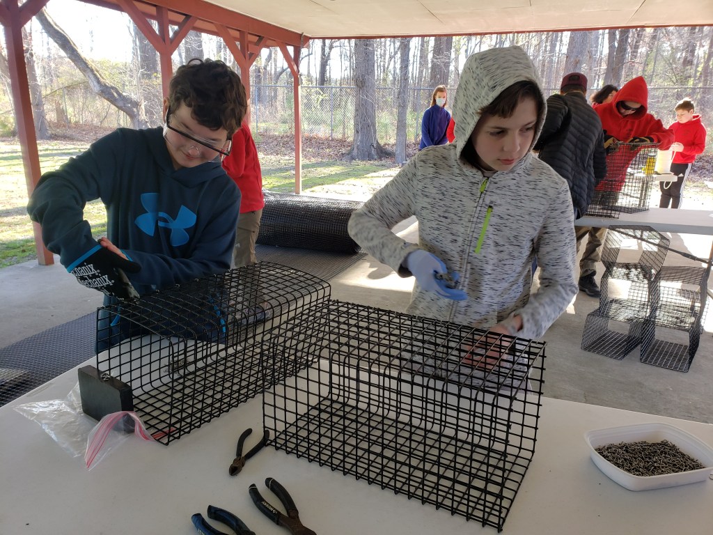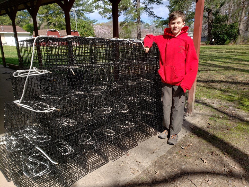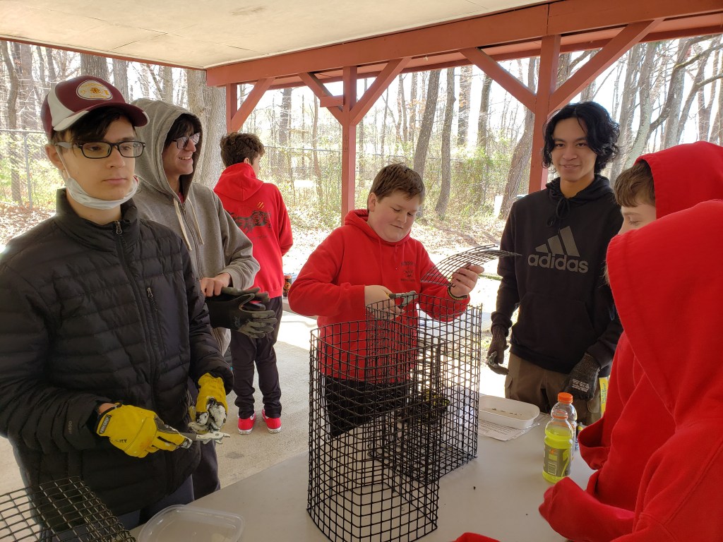Jacob Grieme completed his Eagle project with help from 18 of his fellow scouts and leaders. His project was for the Chesapeake Bay Foundation. Various stations were in place to cut and bend wire and tie rope to the completed cages. Over 60 cages were made to benefit the Chesapeake Bay Foundation’s effort to replenish the oyster population keeping the bay clean. In addition to helping this great effort, the scouts received conservation hours for their work.