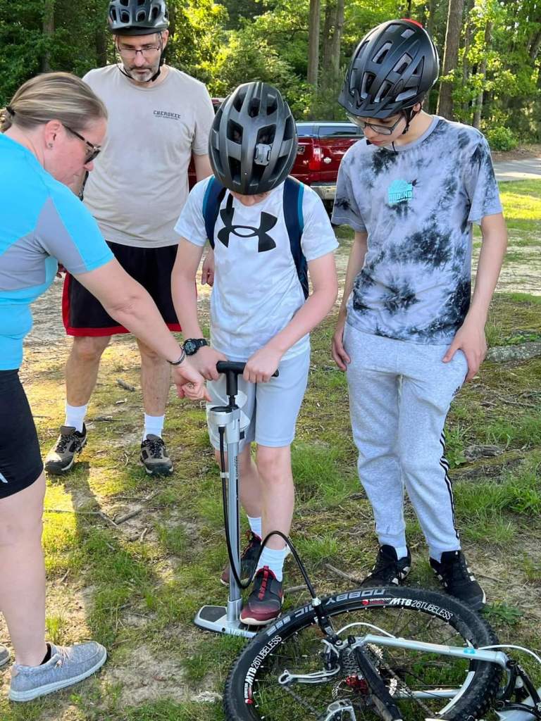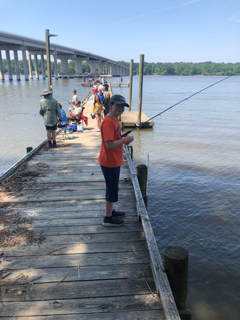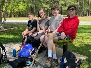 Our May campout was at Chickahominy Riverfront Park for hiking, biking and fishing. Scouts participated in one of the 3 activities on Saturday from about 10am to 3pm. Troop Leader, Mr. Meyers was the only one to successfully catch a fish, even though numerous attempts were made by the Scouts and Scouters. The bikers, led by Mrs. Williams, completed a 16.9 mile ride. We also collected old t-shirts and turned them into dog toys for a service project. After the campfire program on Saturday evening, we discovered that a storm was quickly approaching and determined that we would probably need to seek shelter in our cars. The storm brought rain, wind and lightning for a couple of hours and when we were finally allowed out of the cars, we noticed that many tents were flooded and even our canopy tents were damaged. Due to the flooding, extra gear was needed to provide dry shelter for some scouts. Although we had some difficulties during this campout, we worked together and used our scouting knowledge to preserve and make it a great campout.