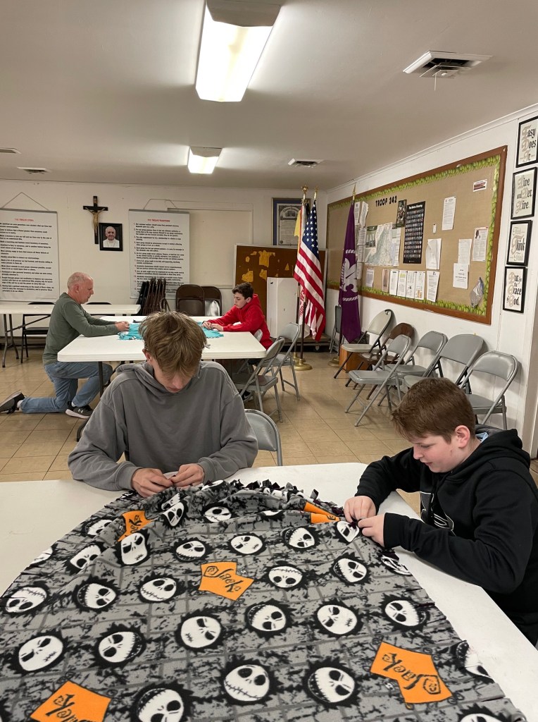 Emma is the twin sister of Lina as we all know. Emma is also a founding member of Troop 242 (G). Emma’s project was making tie blankets out of fleece for CHKD in Norfolk. Emma and several scouts helped to make 20 blankets.