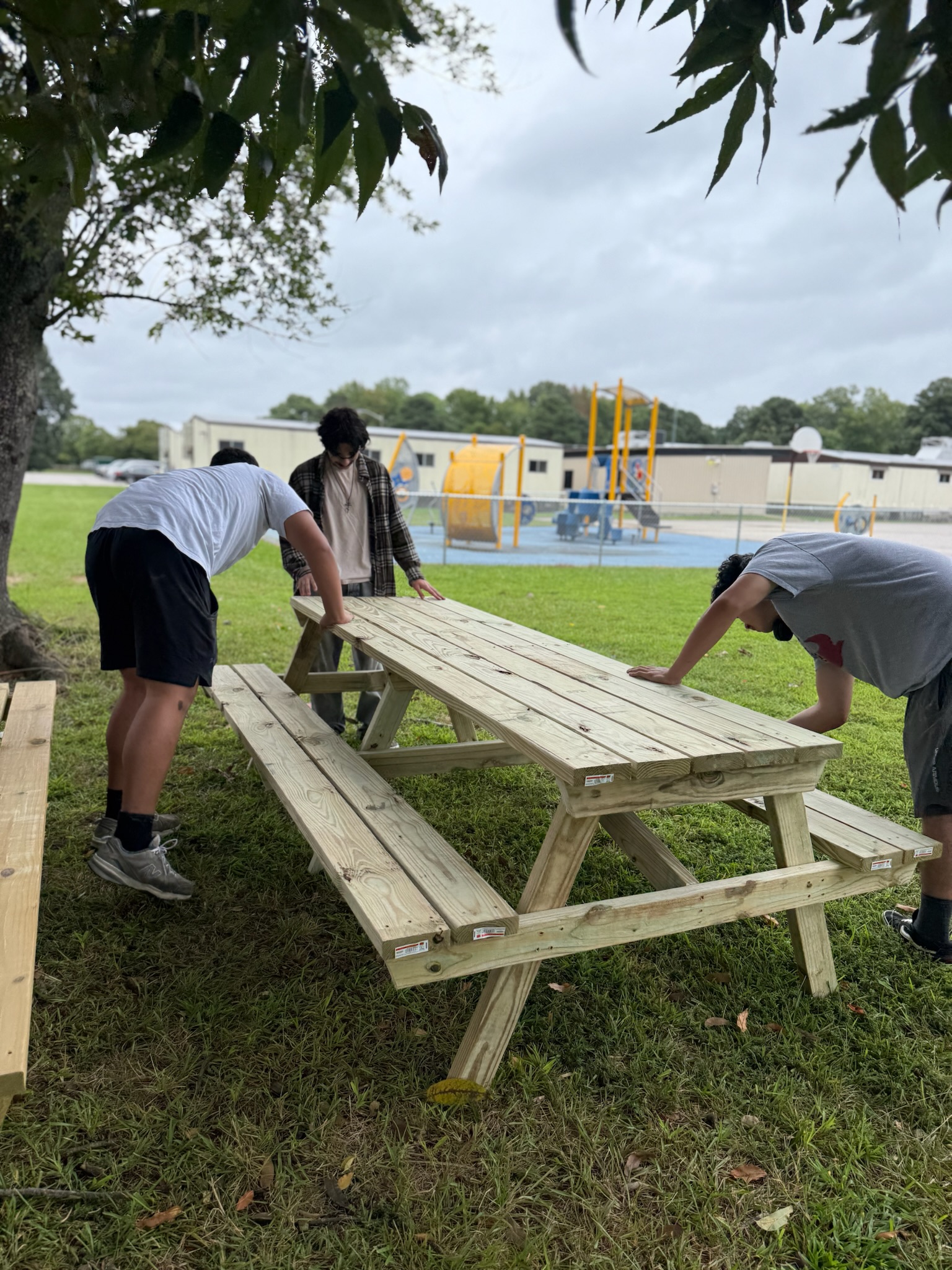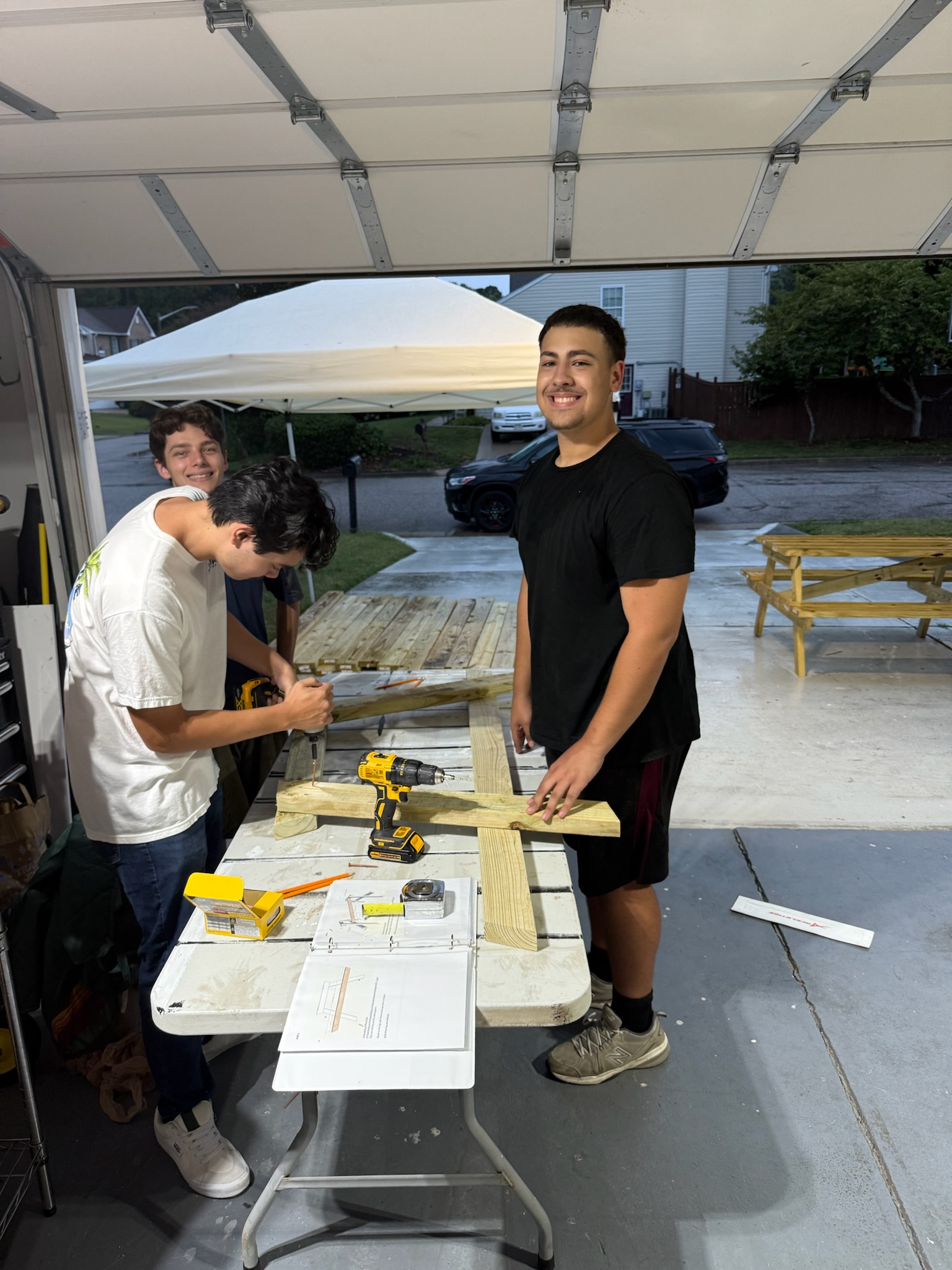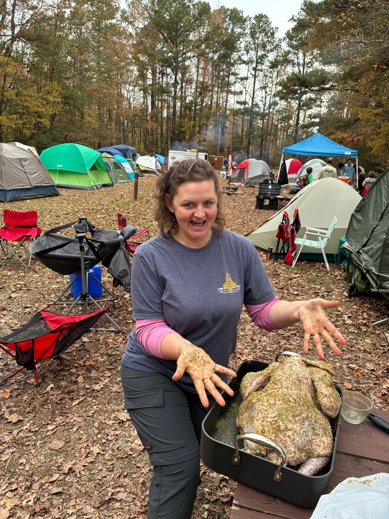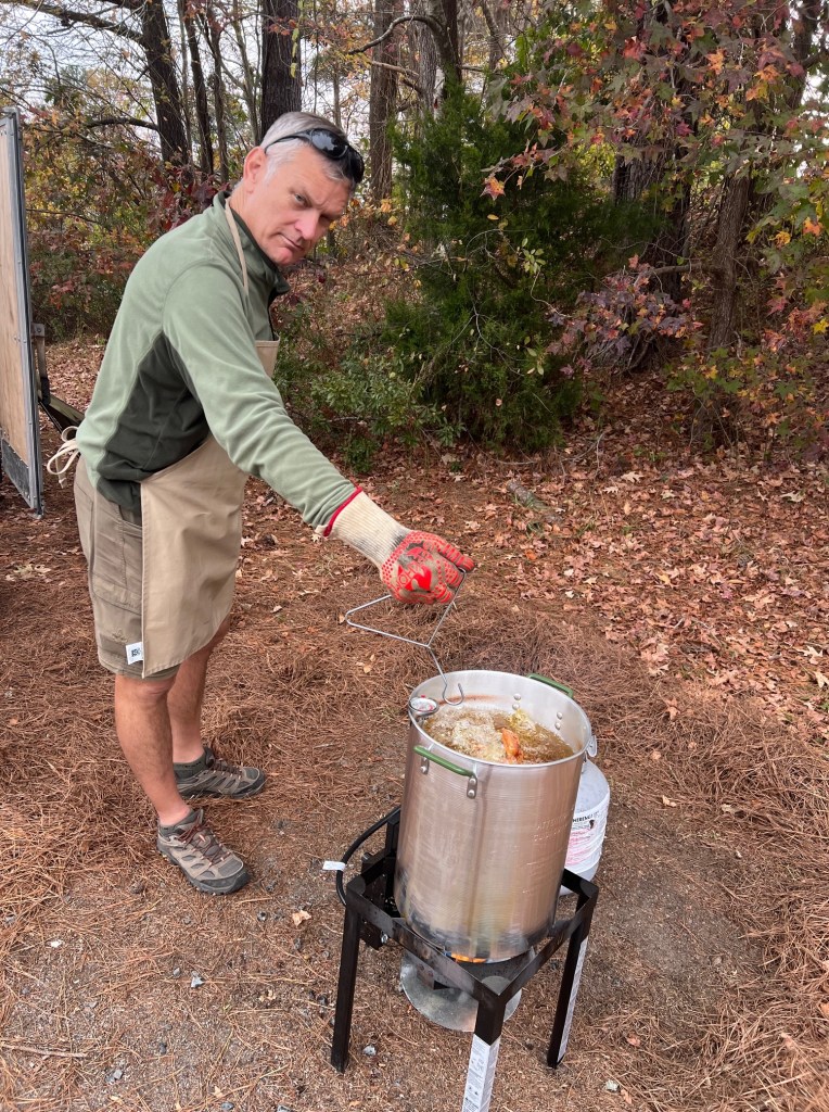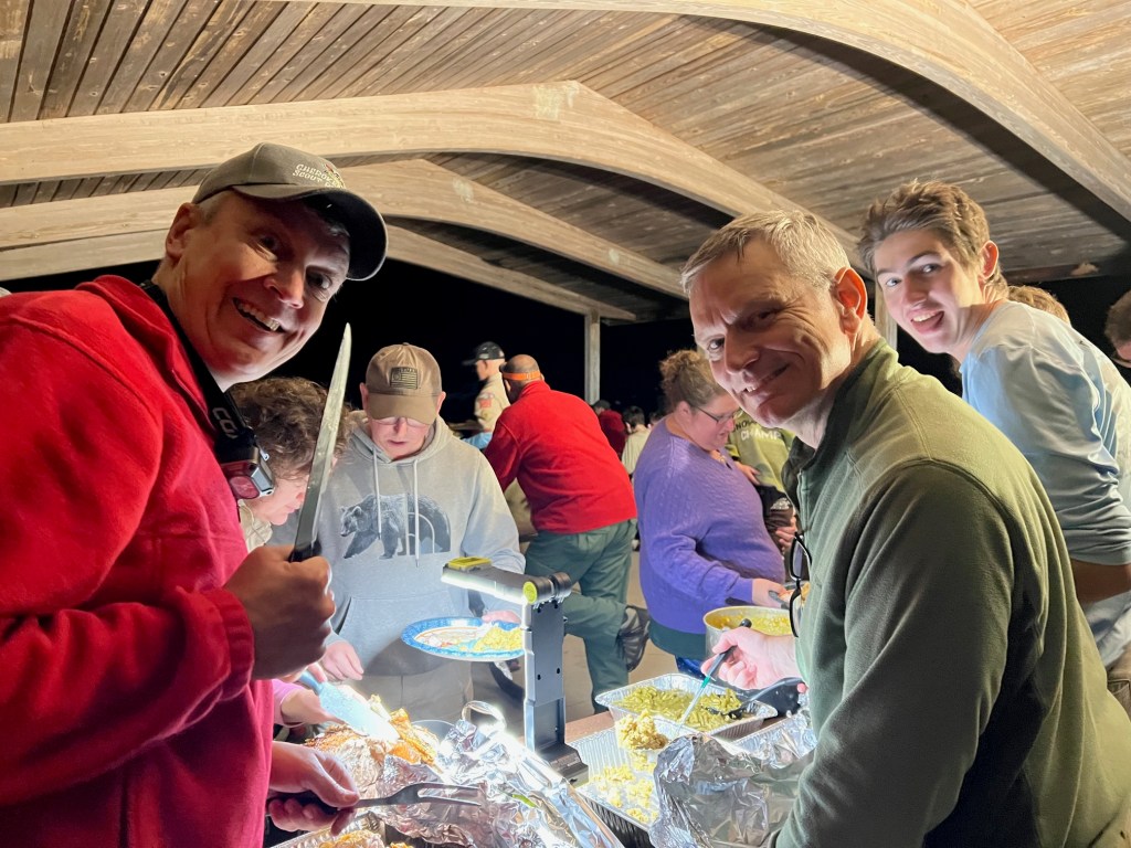 The Thanksgiving dinner was a great success! The boys made green beans and stuffing, and the girls made mac and cheese. Scoutmaster Grieme fried a turkey while Scoutmaster Mead made a trash can turkey