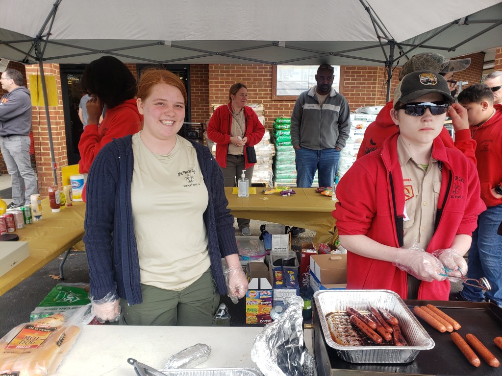 Our May campout was at Chickahominy Riverfront Park for hiking, biking and fishing. Scouts participated in one of the 3 activities on Saturday from about 10am to 3pm. Troop Leader, Mr. Meyers was the only one to successfully catch a fish, even though numerous attempts were made by the Scouts and Scouters. The bikers, led by Mrs. Williams, completed a 16.9 mile ride. We also collected old t-shirts and turned them into dog toys for a service project. After the campfire program on Saturday evening, we discovered that a storm was quickly approaching and determined that we would probably need to seek shelter in our cars. The storm brought rain, wind and lightning for a couple of hours and when we were finally allowed out of the cars, we noticed that many tents were flooded and even our canopy tents were damaged. Due to the flooding, extra gear was needed to provide dry shelter for some scouts. Although we had some difficulties during this campout, we worked together and used our scouting knowledge to preserve and make it a great campout.